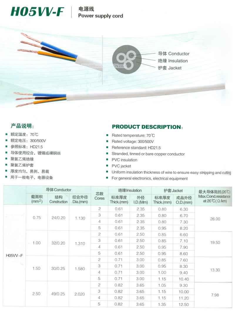 >> HO5W-F電源線