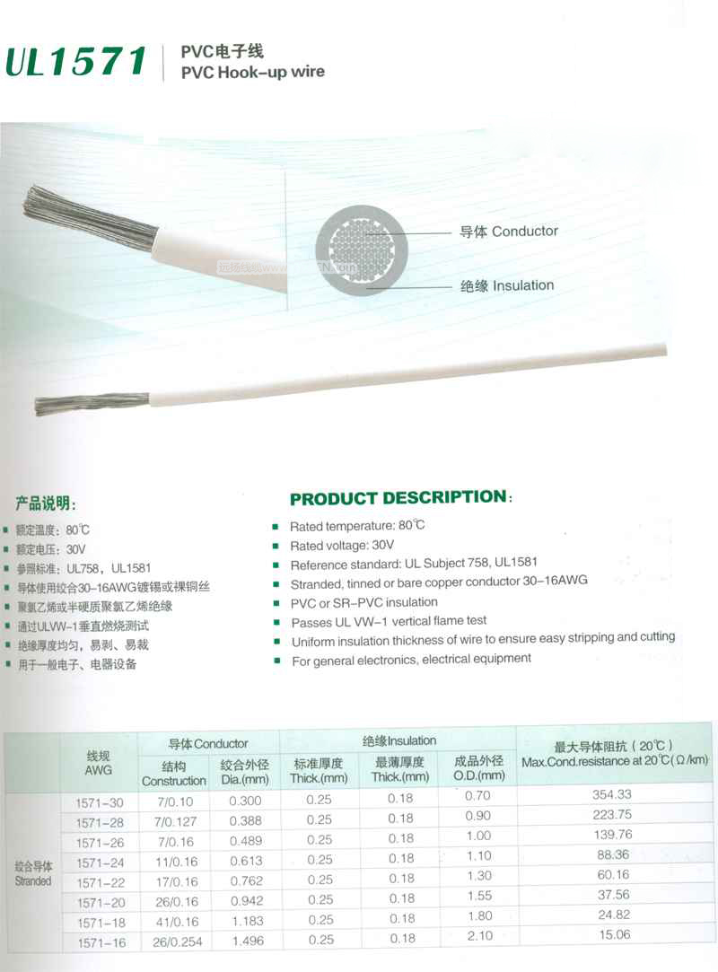 >> UL1571PVC電源線